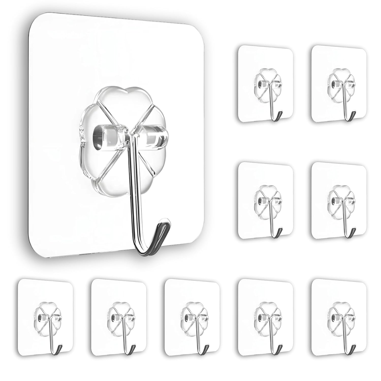 Flower Adhesive Wall Hooks, 10 Pack Heavy Duty Hooks for Wall Hanging, Strong | Self-Adhesive Sticker Hooks for Walls | Waterproof Wall Hanger Hook for Hanging Coats, Keys, and Heavy Items